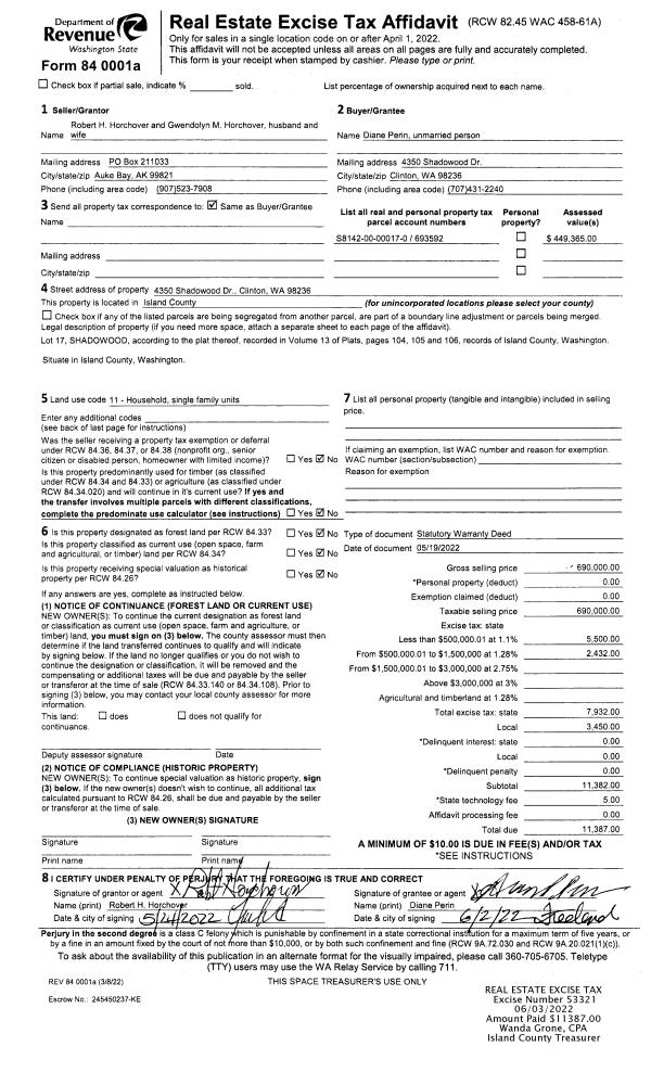| Mailing Address: | APRIL R NELSON 630 SUNRISE BLVD CAMANO ISLAND, WA 98282 | % Ownership: | 100.0000000000% |