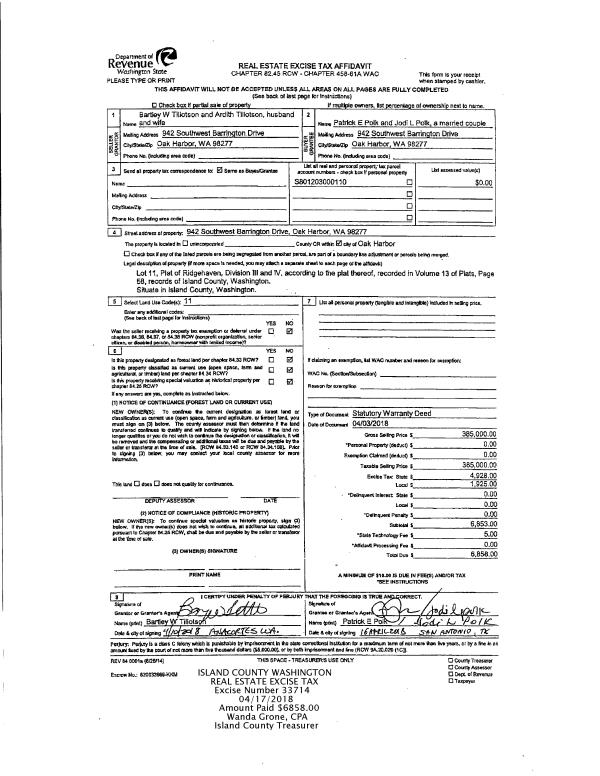 | 1 | 04/17/2018 | WD | Warranty Deed | HAGSTROM TRUSTEE UNDIV 1/2 INT, RICHARD E | NELSON, J ROGER | | | $41,600.00 | 33764 | 4442971 |