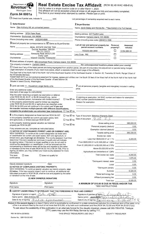 | 1 | 02/09/2023 | GRANTD | Grant Deed | KRISTOFERSON FARM, LLC | WHIDBEY CAMANO LAND TRUST | | | $992,500.00 | 55862 | 4556738 |