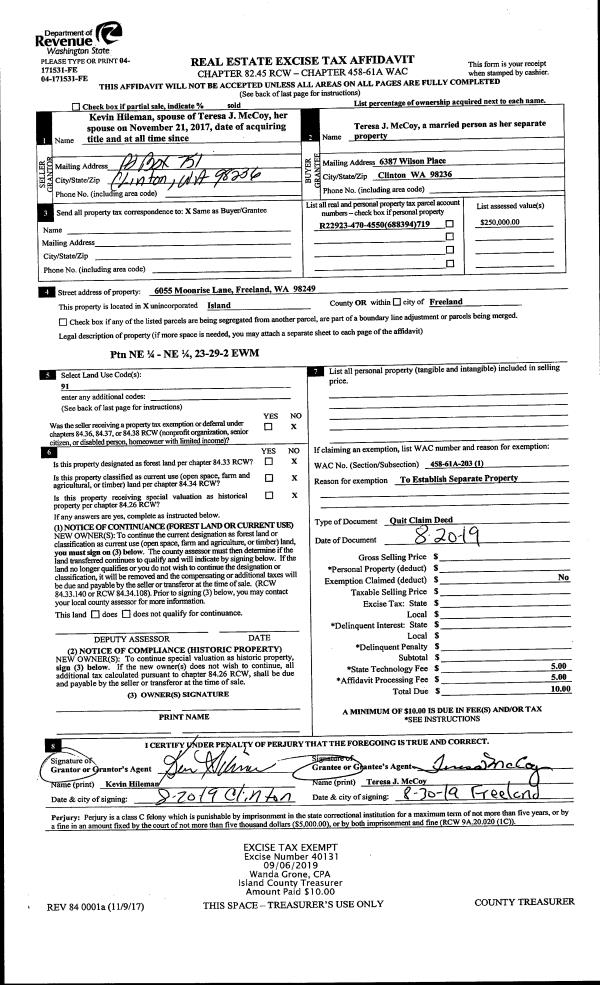 | Mailing Address: | 286 PARK VIEW LN CAMANO ISLAND, WA 98282 | % Ownership: | 100.0000000000% |