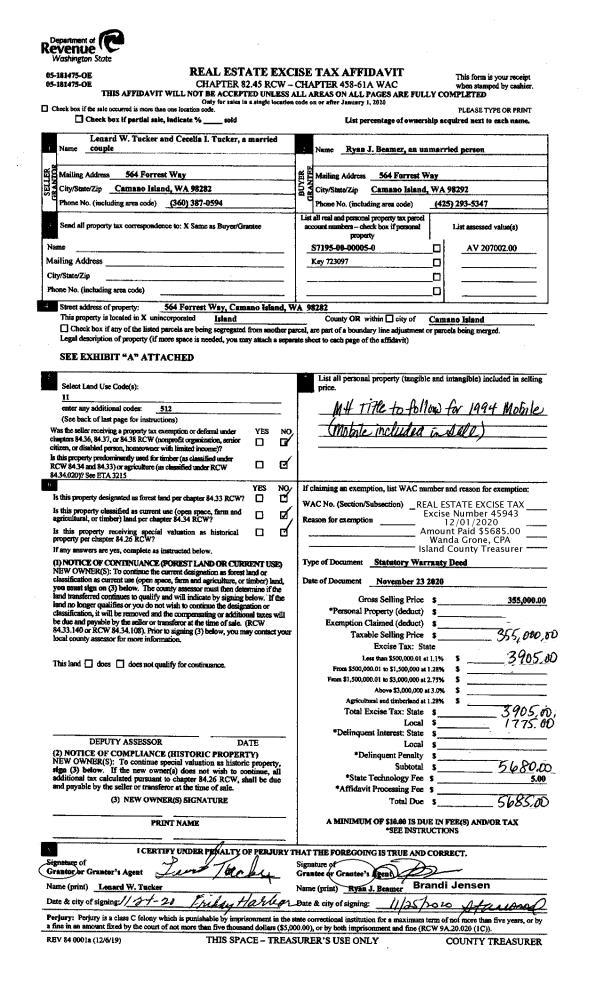| Mailing Address: | 365 DURR DR CAMANO ISLAND, WA 98282 | % Ownership: | 100.0000000000% |
