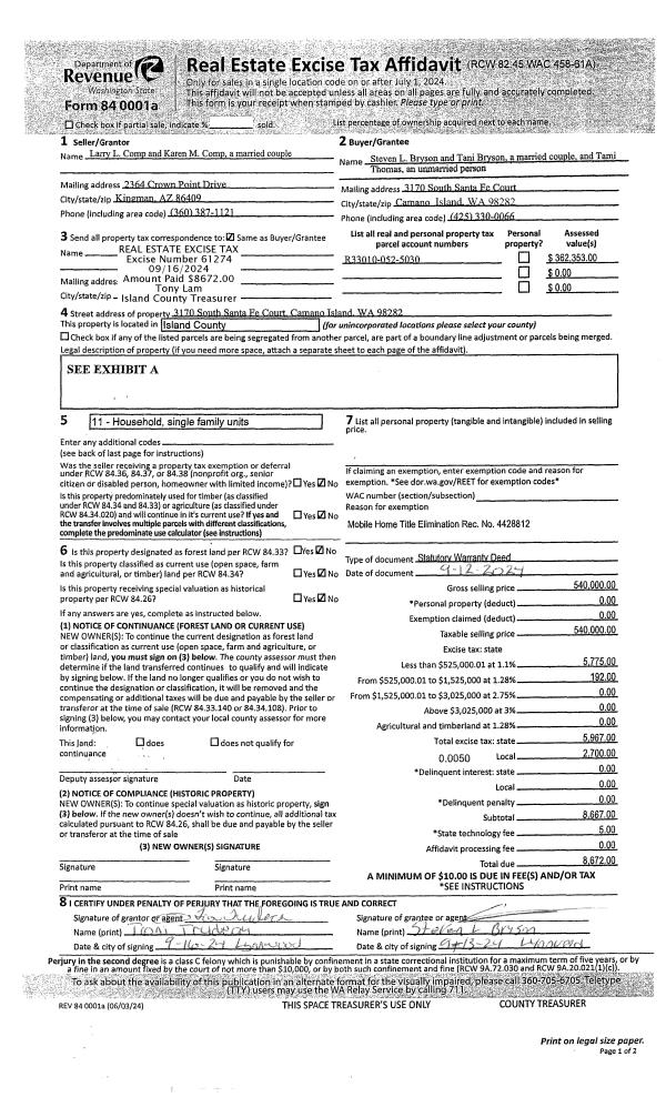 | Mailing Address: | 1665 FT NUGENT RD OAK HARBOR, WA 98277 | % Ownership: | 100.0000000000% |