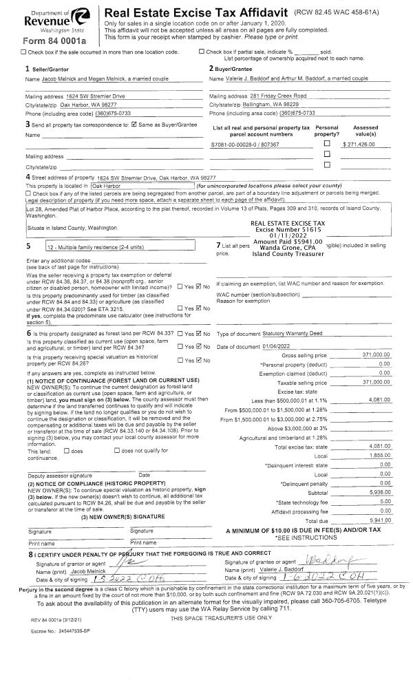 | Mailing Address: | 267 N SUNRISE BLVD CAMANO ISLAND, WA 98282 | % Ownership: | 100.0000000000% |