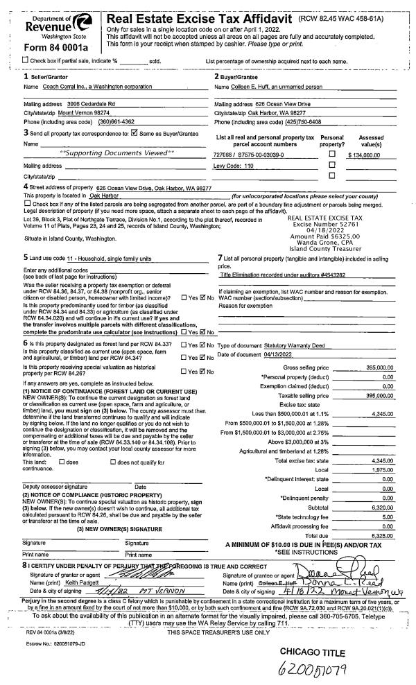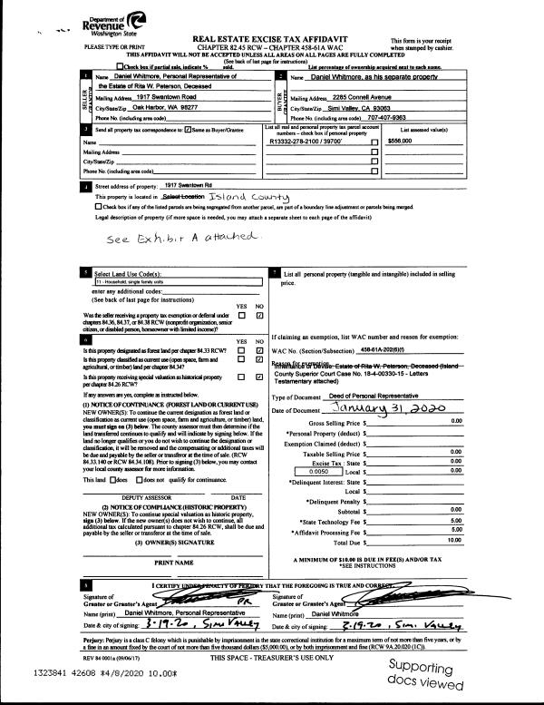 | 1 | 11/21/2019 | WD | Warranty Deed | DOANE, WILLIAM S | ISLAND COUNTY PUBLIC WORKS | | | $0.00 | 41308 | 4476681 |