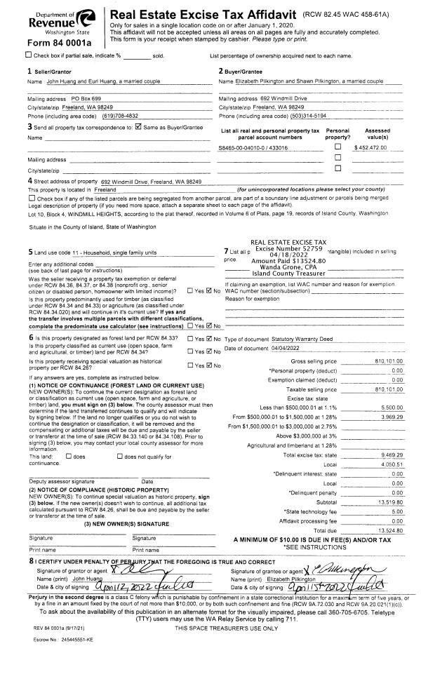 | 1 | 01/29/2021 | EZ | Easement | CHONG, HERMANN | ISLAND COUNTY PUBLIC WORKS | | | $0.00 | 47175 | 4512472 |