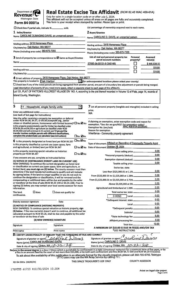 | Mailing Address: | 1694 BOON RD OAK HARBOR, WA 98277-8400 | % Ownership: | 100.0000000000% |