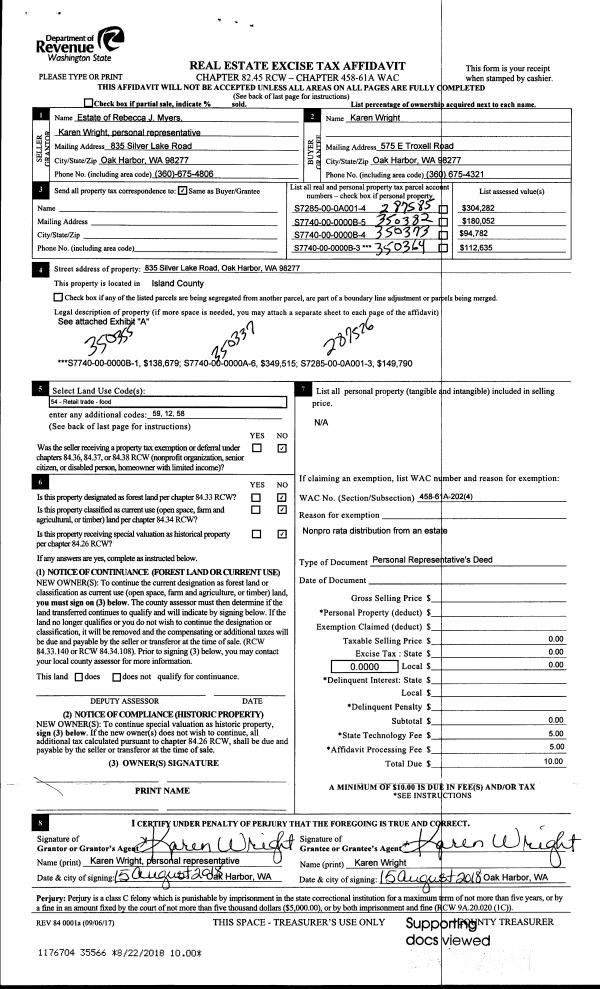 | Mailing Address: | RYNN MARIE LAMB 8645 STATE ROUTE 525 CLINTON, WA 98236 | % Ownership: | 100.0000000000% |