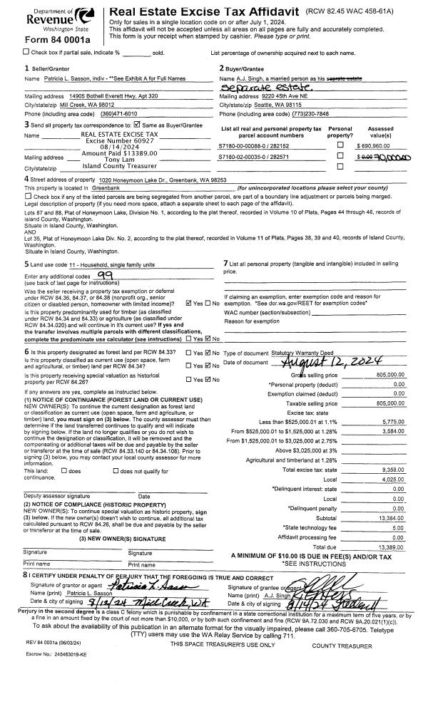 | Mailing Address: | 5364 MUTINY BAY RD FREELAND, WA 98249 | % Ownership: | 100.0000000000% |