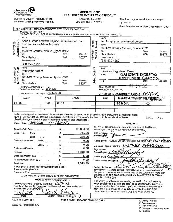| Tax Area: | 710 - APPRAISER-S Whid Schl Dist, outside Langley, improved & 1 acre or less | Land Use Code | 11 |