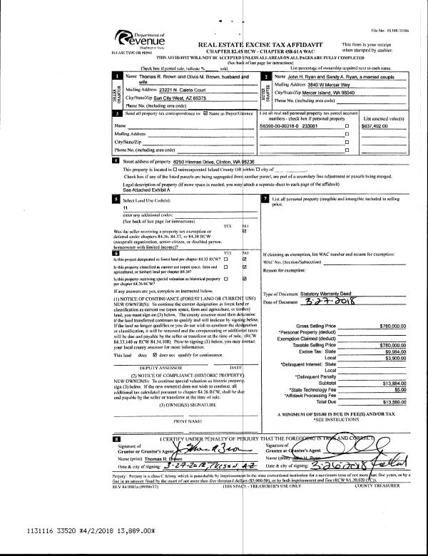 | 2 | 08/15/2016 | WD | Warranty Deed | TERPSTRA, THOMAS H | TERPSTRA TRUSTEE, THOMAS HARRY | | | $0.00 | 25807 | 4405731 |