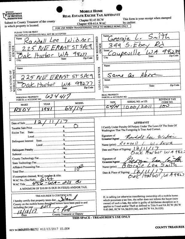 | Mailing Address: | 1885 BOON RD OAK HARBOR, WA 98277-8104 | % Ownership: | 100.0000000000% |