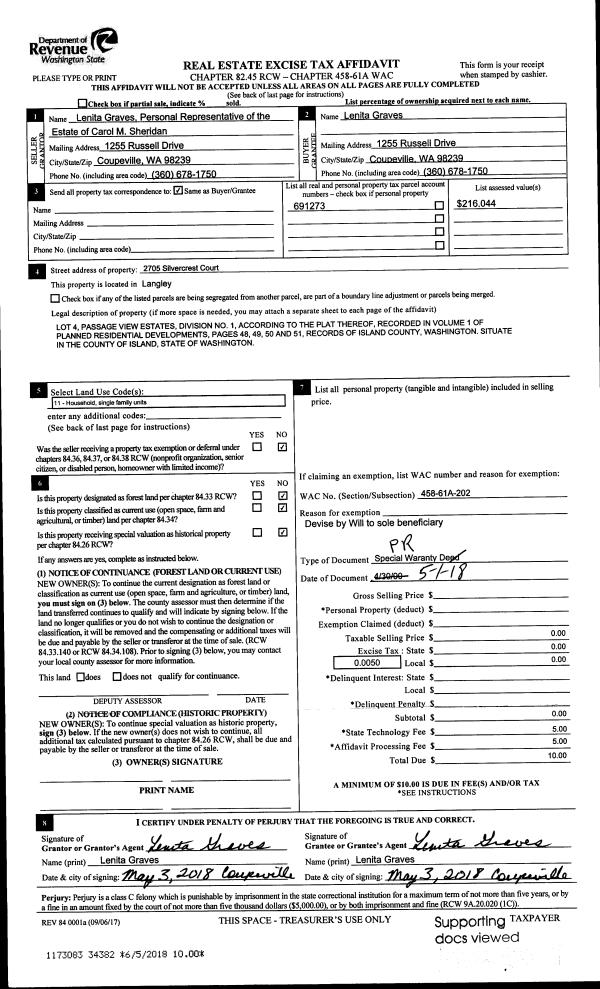 | 4 | 04/07/2016 | PRD | Personal Representatives Deed | ELLIS, ELOYSE N | ELLIS JR, DON L | | | $0.00 | 24163 | 4398696 |