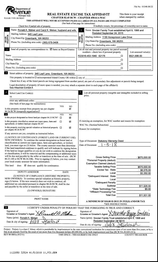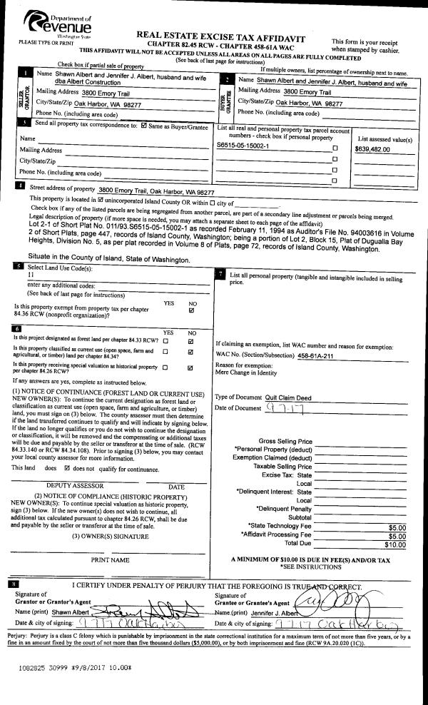 | Mailing Address: | 1330 FARRAGUT DR COUPEVILLE, WA 98239 | % Ownership: | 100.0000000000% |