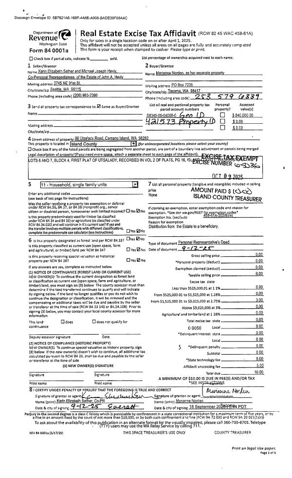 | Mailing Address: | 1265 HALSEY DR COUPEVILLE, WA 98239 | % Ownership: | 100.0000000000% |