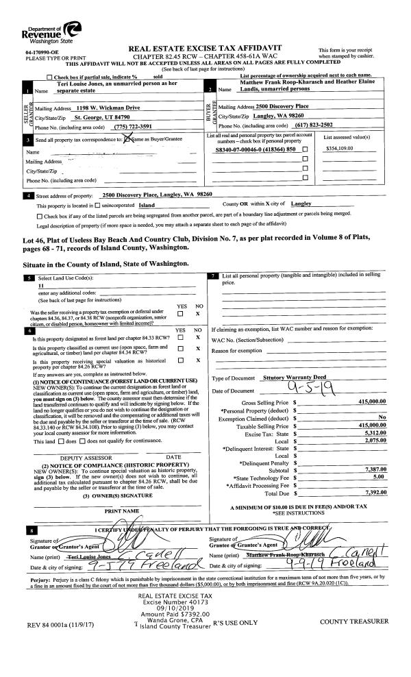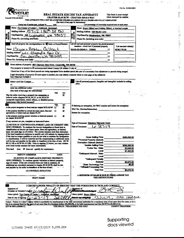 | Mailing Address: | KENNETH E CASEY 1254 ADMIRALS DR COUPEVILLE, WA 98239 | % Ownership: | 100.0000000000% |