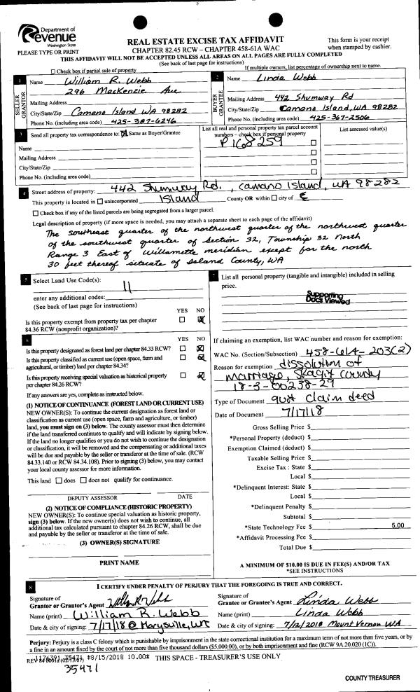 | Mailing Address: | 1264 ADMIRALS DR COUPEVILLE, WA 98239 | % Ownership: | 100.0000000000% |