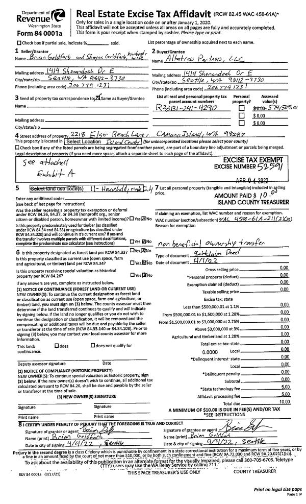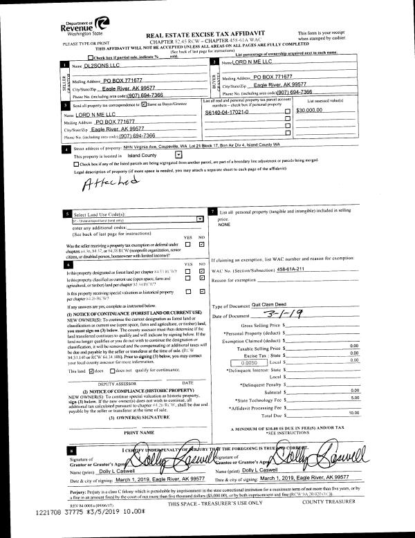 | Mailing Address: | STEVEN M JACKSON 1912 BOON RD OAK HARBOR, WA 98277 | % Ownership: | 100.0000000000% |