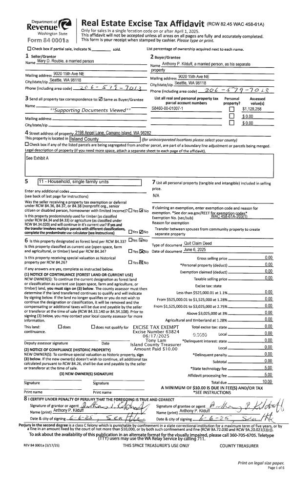 | Mailing Address: | HANNAH B KAYSER 1251 ADMIRALS DR COUPEVILLE, WA 98239 | % Ownership: | 100.0000000000% |