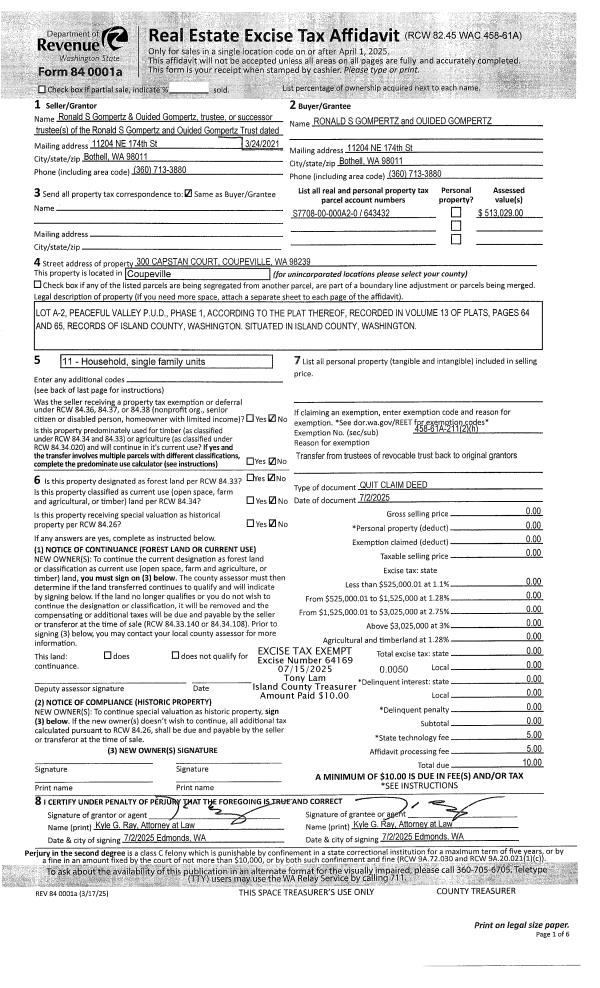 | Mailing Address: | PO BOX 592 COUPEVILLE, WA 98239-0592 | % Ownership: | 100.0000000000% |