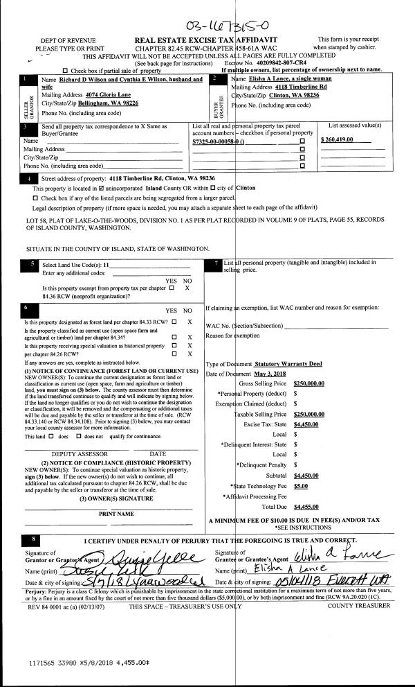 | 5 | 05/01/1985 | EXECUTORD | Executor Deed | WHITON, CHARLES B | WHITON, CHARLES B | | | $0.00 | 51417 | 85005748 |