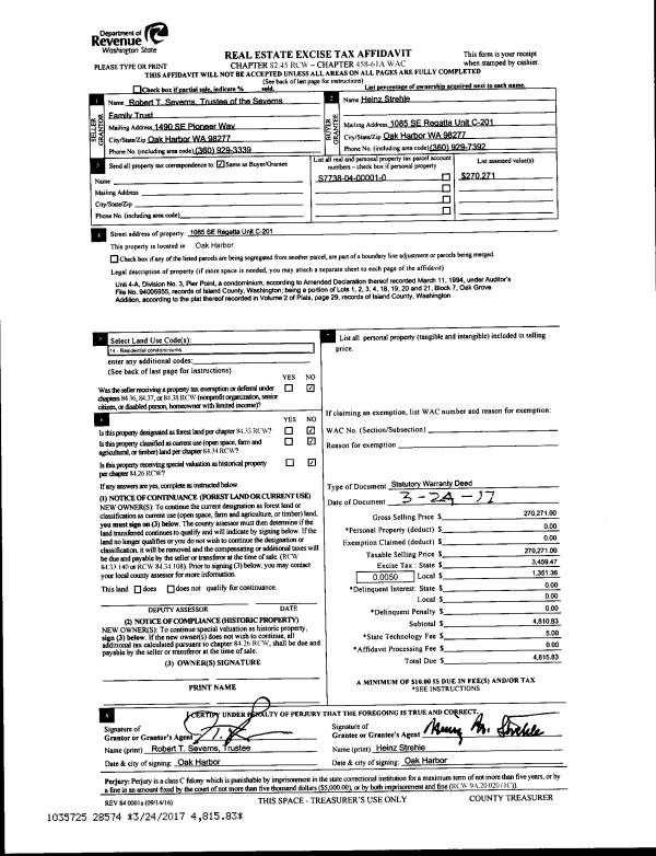 | 3 | 01/19/2017 | WD | Warranty Deed | MUELLER JTWROS, TERENCE S | MUELLER TRUSTEE, TERENCE S | | | $0.00 | 27905 | 4416128 |