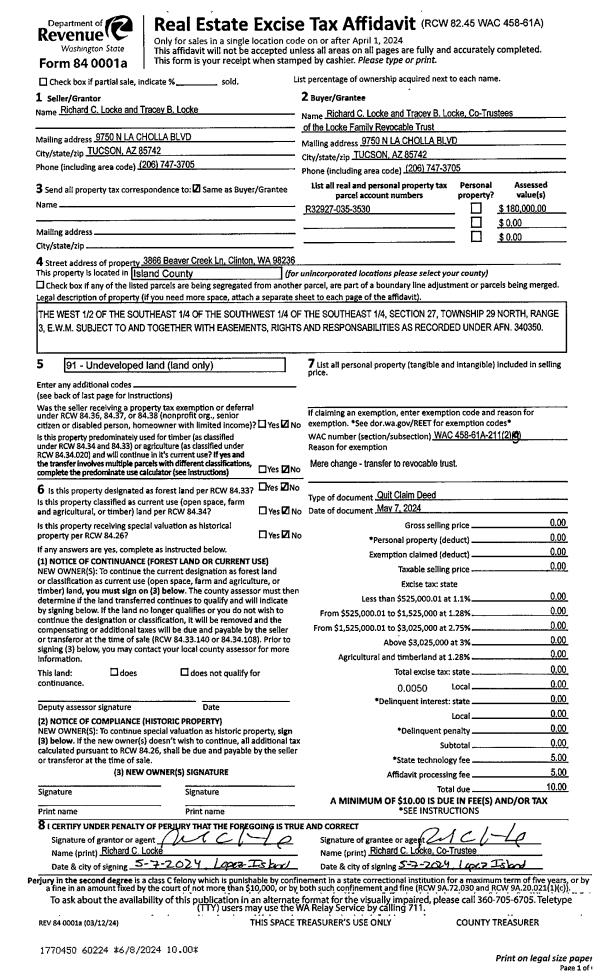| 1 | 10/16/2023 | TTAXD | Treasurer's Tax Deed | ISLAND COUNTY TAX TITLE | ISLAND COUNTY PUBLIC WORKS - COUNTY ROADS | | | $0.00 | 58252 | 4565754 |