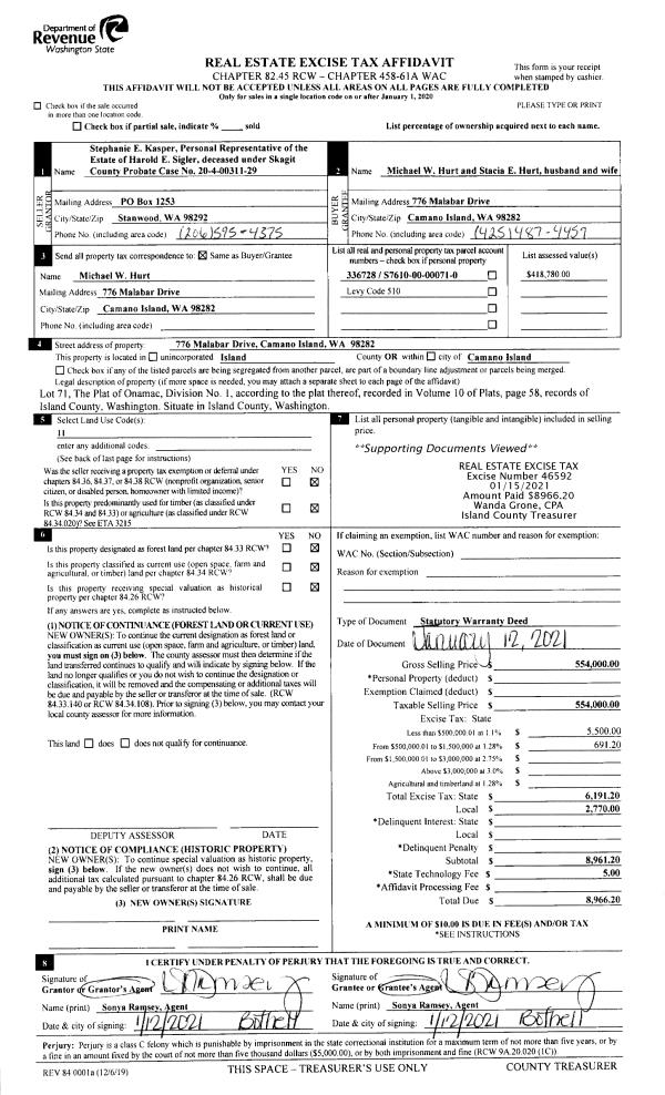 | Mailing Address: | 754 SW 1ST AVE OAK HARBOR, WA 98277 | % Ownership: | 100.0000000000% |