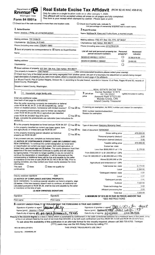 | Mailing Address: | 1211 ADMRINALS DR COUPEVILLE, WA 98239 | % Ownership: | 100.0000000000% |