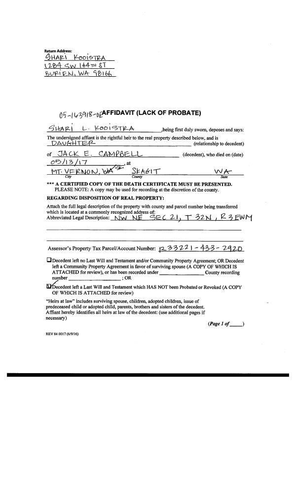 | Mailing Address: | BRITTANY BECK 1273 RICKOVER DR COUPEVILLE, WA 98239 | % Ownership: | 100.0000000000% |