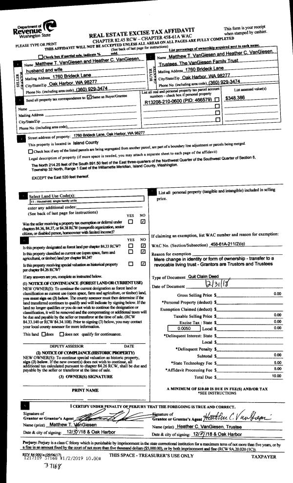 | Mailing Address: | FREDA CHAPMAN 1271 RICKOVER DR COUPEVILLE, WA 98239 | % Ownership: | 100.0000000000% |