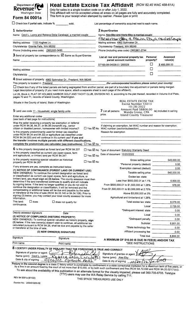 | Mailing Address: | 1247 RICKOVER DR COUPEVILLE, WA 98239-4100 | % Ownership: | 100.0000000000% |