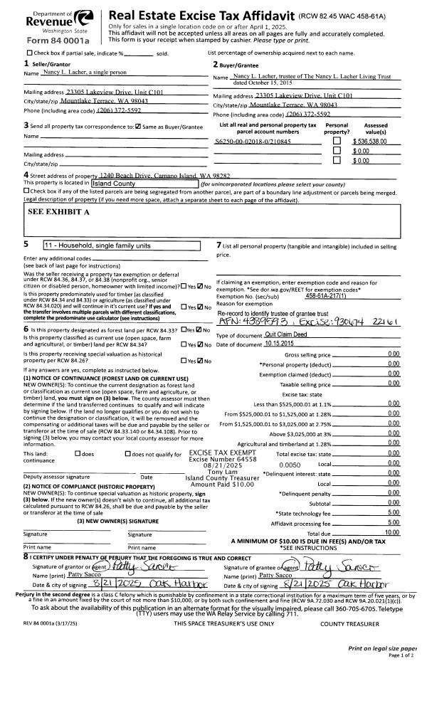 | Mailing Address: | 1231 RUSSELL DR COUPEVILLE, WA 98239-4102 | % Ownership: | 100.0000000000% |