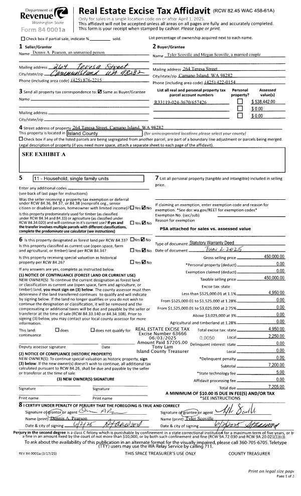 | Mailing Address: | 1218 DEWEY DR COUPEVILLE, WA 98239 | % Ownership: | 100.0000000000% |
