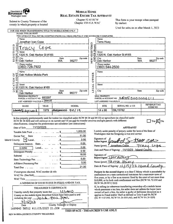 | Mailing Address: | NATASHA MORRISON 1229 SOUTH NIMITZ DR COUPEVILLE, WA 98239 | % Ownership: | 100.0000000000% |