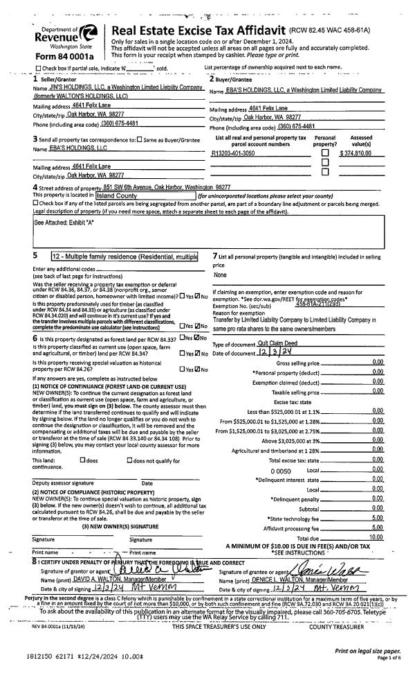 | Mailing Address: | 5633 172ND PL SW LYNNWOOD, WA 98037 | % Ownership: | 100.0000000000% |