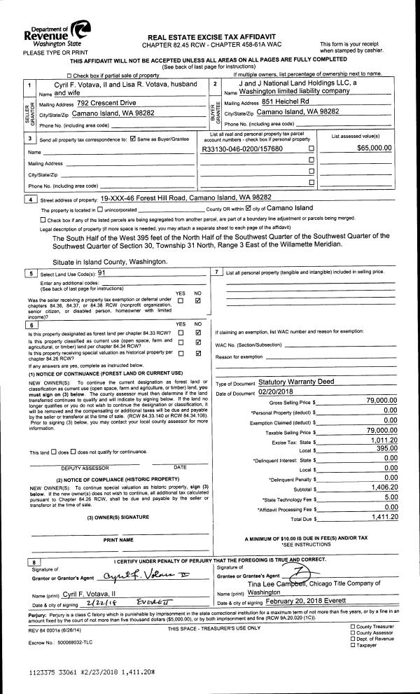 | 5 | 03/14/2018 | TRUSTEED | Trustee's Deed | MC MURTREY, DANIEL E | SALTY GULCH, LLC | | | $201,000.00 | 33315 | 4440910 |