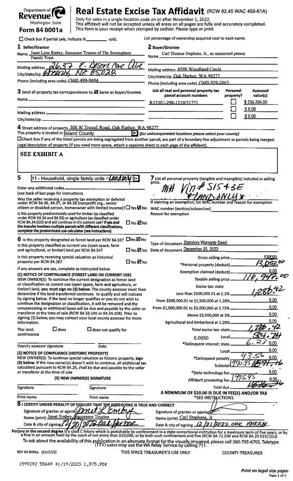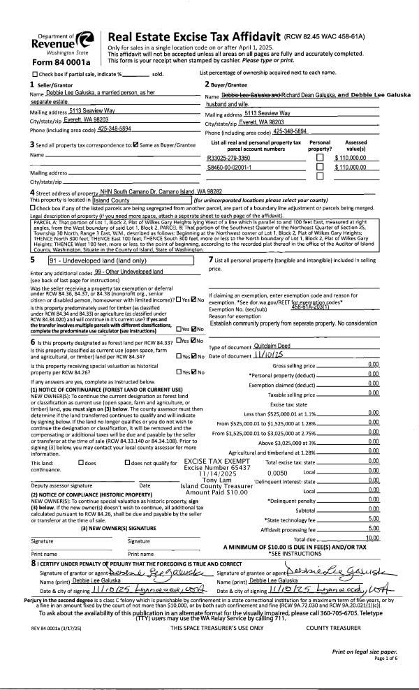 | Mailing Address: | 90 CHAMBERS COURT COUPEVILLE, WA 98239-4107 | % Ownership: | 100.0000000000% |