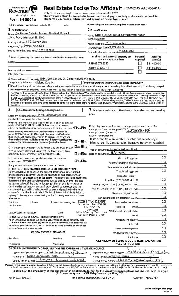 | 1 | 08/13/2025 | WD | Warranty Deed | SAXAUER, HOWARD JOHN | WIDDICOMBE, BRETT | | | $20,000.00 | 64566 | 4589950 |