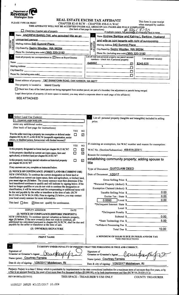 | 2 | 03/29/2017 | WD | Warranty Deed | CORPORATION OF THE CATHOLIC ARCHBISHOP OF SEATTLE | SAXAUER, HOWARD JOHN | | | $10,000.00 | 28682 | 4419906 |