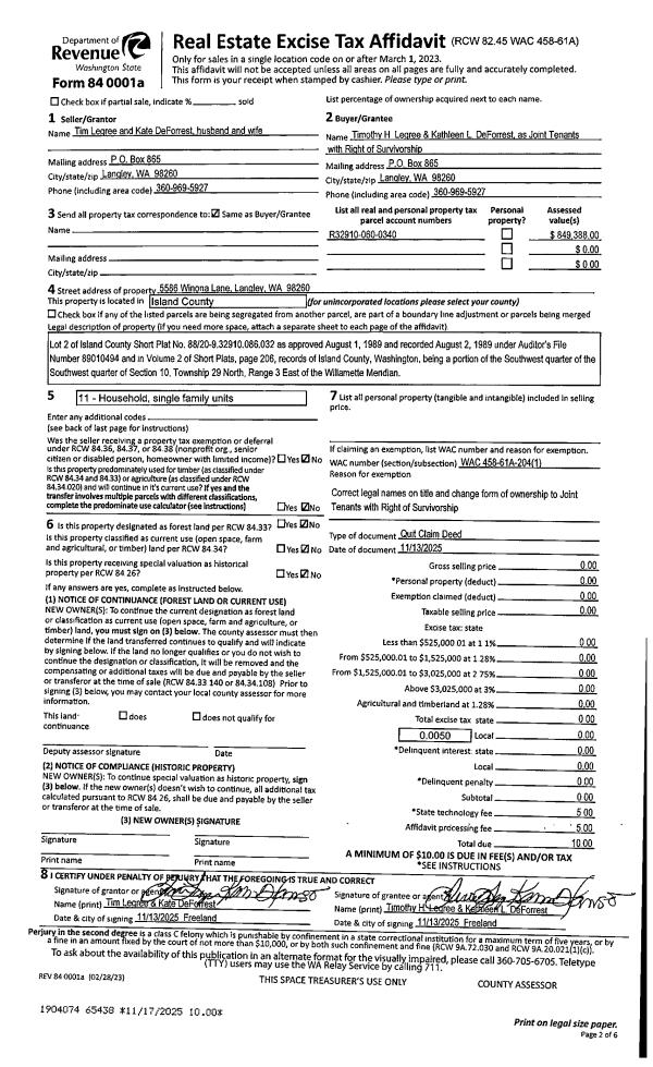 | Mailing Address: | 1196 NIMITZ DR COUPEVILLE, WA 98239 | % Ownership: | 100.0000000000% |