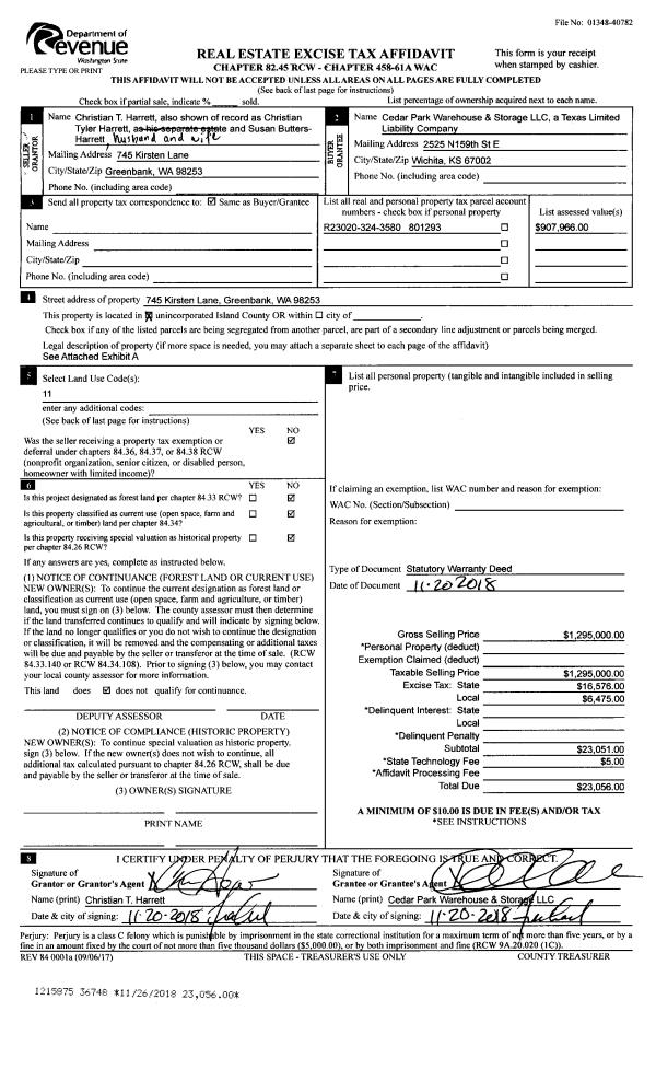 | Mailing Address: | JANINE ST. JOHN 1178 LEAHY DR COUPEVILLE, WA 98239 | % Ownership: | 100.0000000000% |