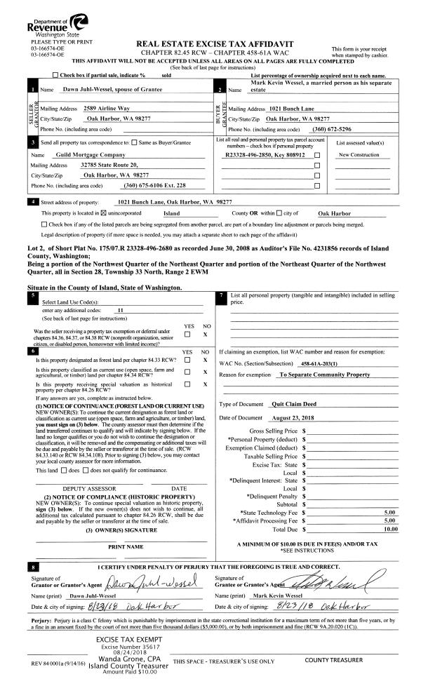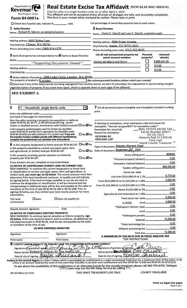 | Mailing Address: | 1189 LEAHY DR COUPEVILLE, WA 98239-9726 | % Ownership: | 100.0000000000% |