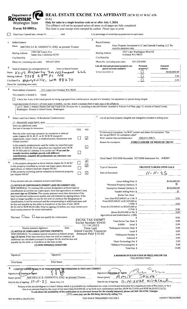 | Mailing Address: | KATELYN KINDBERG 1159 LOCKWOOD DR COUPEVILLE, WA 98239 | % Ownership: | 100.0000000000% |
