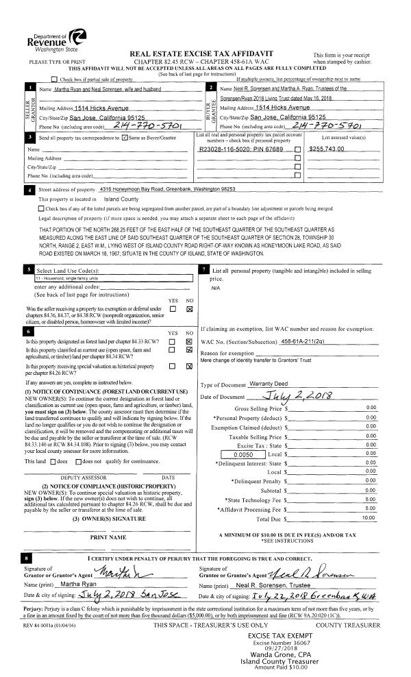 | Mailing Address: | PO BOX 19 COUPEVILLE, WA 98239 | % Ownership: | 100.0000000000% |