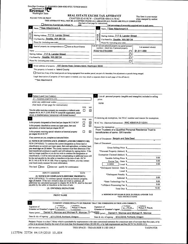 | Mailing Address: | TEKLA M CUNNINGHAM 4738 38TH AVE NE SEATTLE, WA 98105 | % Ownership: | 100.0000000000% |