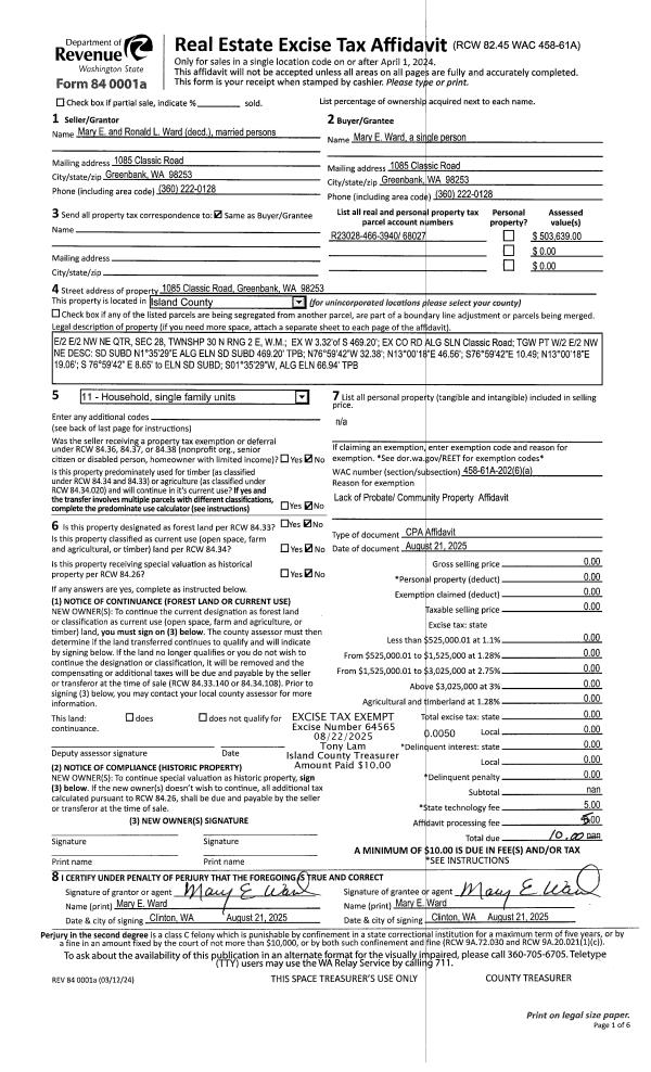 | Mailing Address: | 1255 RUSSELL DR COUPEVILLE, WA 98239 | % Ownership: | 100.0000000000% |