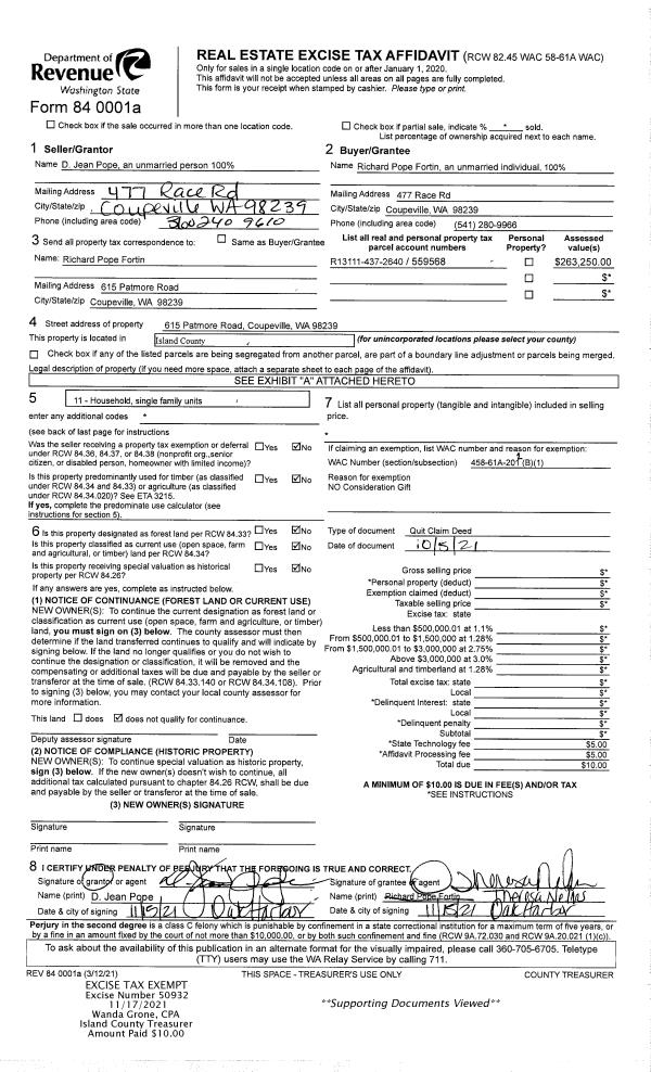 | Tax Area: | 712 - APPRAISER-S Whid Schl Dist, outside Langley, improved, greater than 1 acre | Land Use Code | 11 |