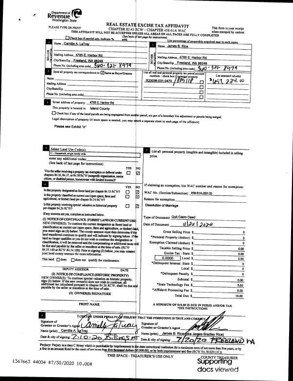 | Tax Area: | 719 - APPRAISER-S Whid Schl Dist, outside Langley, vacant & 50 acres or less | Land Use Code | 99 |
