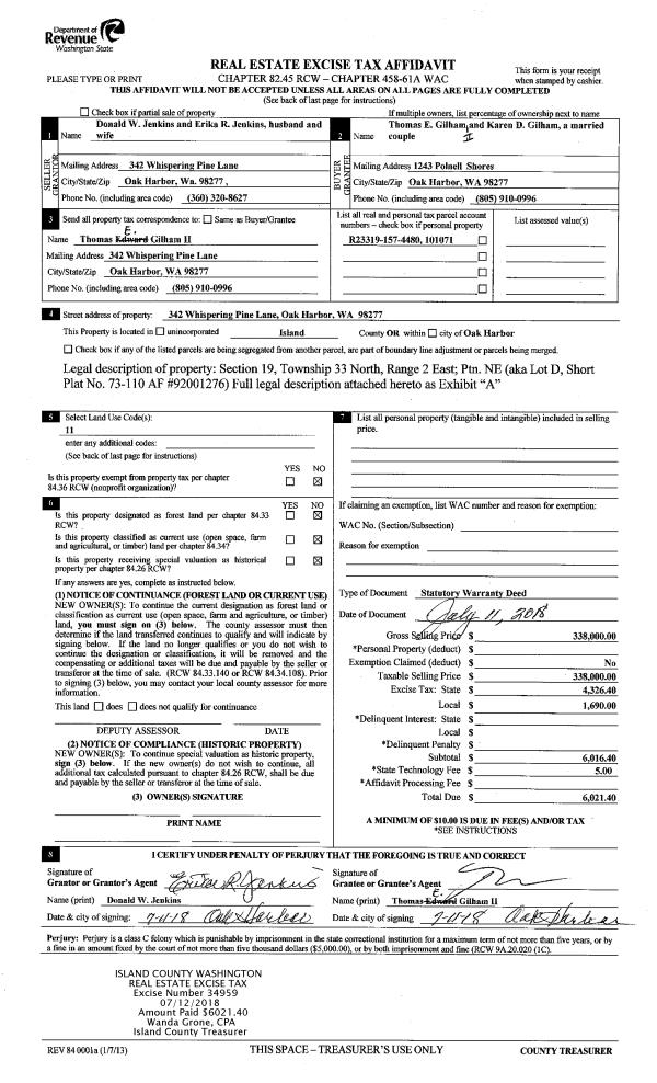 | 1 | 06/14/2018 | TTAXD | Treasurer's Tax Deed | ISLAND COUNTY TAX TITLE | DIACONU, VLAD | | | $2,293.00 | 34506 | 4446120 |