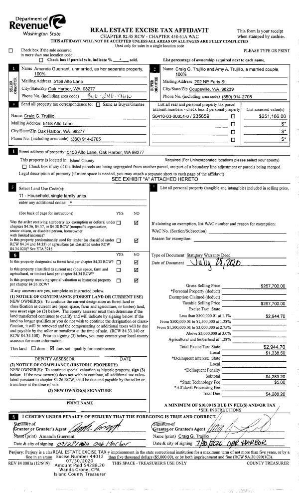 | 1 | 01/09/2004 | TTAXD | Treasurer's Tax Deed | ISLAND, COUNTY T | DUGUAY, GERARD | | | $1,100.00 | 4009 | 4088044 |